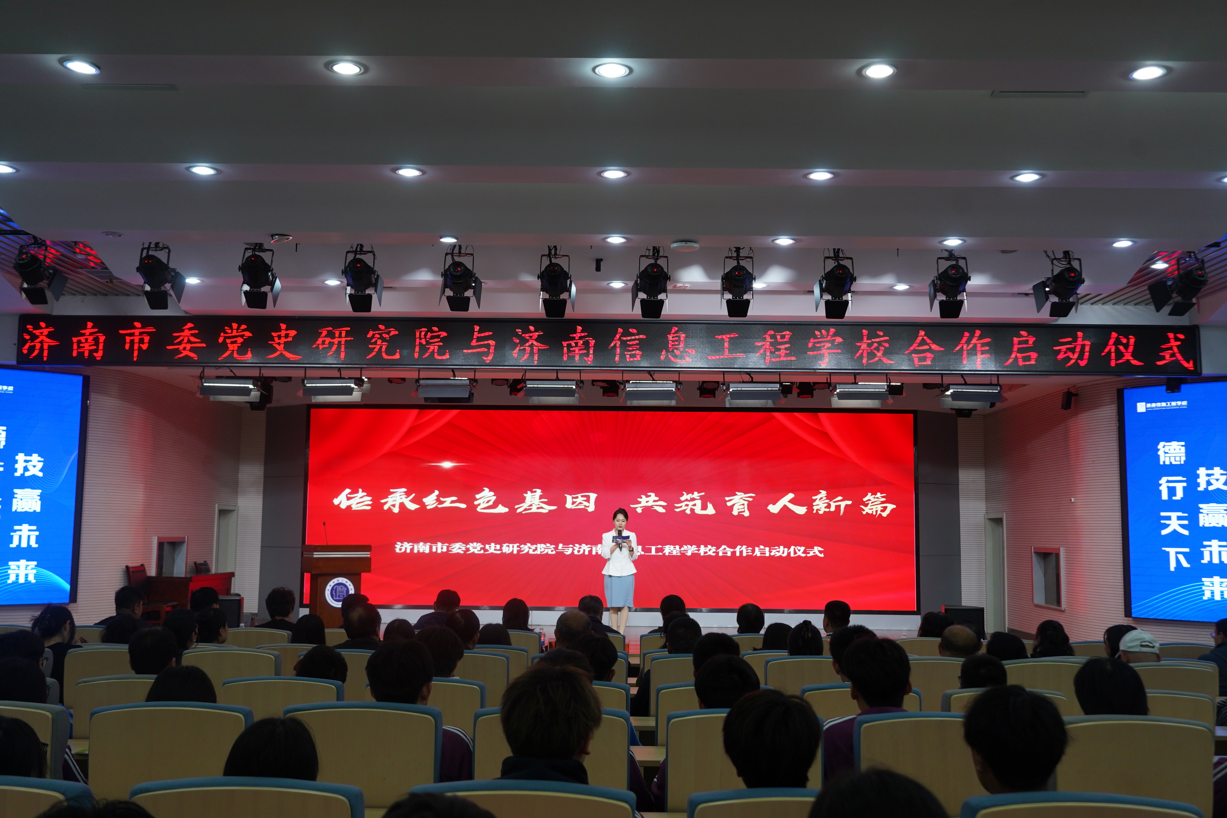 为深入落实立德树人根本任务,充分激活济南红色资源育人效能,全面提升职业院校思想政治教育工作质量,10月14日下午,济南市委党史研究院与济南信息工程学校联合举行"传承红色基因,共筑育人新篇"合作共建启动仪式。济南市委党史研究院副院长王音,济南市教育局学校党建工作处处长、一级调研员尹梅青,市委党史研究院宣传教育处处长李金凤等相关负责同志,以及济南信息工程学校党委书记徐德亮,党委副书记、校长王焐和师生代表300余人参加了仪式。 仪式现场,双方共同签署合作共建协议,明确将聚焦三大重点领域深化协作:一是共建红色教育资源库,系统梳理整合地方党史素材与教育教学需求;二是共育时代新人,推动红色教育融入人才培养全过程;三是共研数字赋能党史宣教,探索技术赋能下的党史传播新路径。通过多维度合作,着力构建党史研究与职业教育同频共振的"大党史"工作新格局。 在与会人员的共同见证下,双方为"济南市委党史研究院思政教学基地"揭牌。此举标志着济南市在红色教育资源与职业教育深度融合领域迈出关键一步,为校地协同开展思政教育搭建了广阔平台。启动仪式上,学校向市委党史研究院三位专家颁发了指导专家聘书,聘请专家团队为思政教育提供专业支撑;市委党史研究院向学校捐赠党史书籍,为师生开展党史学习提供丰富资料。 此次合作是贯彻落实"大思政课"建设要求的创新实践,通过搭建"红色资源+职业教育"育人桥梁,实现党史研究优势与职业教育特色的有机结合。双方表示,将以此次合作为新起点,进一步强化协同联动,既依托学校专业优势为党史史志事业注入科技活力,又借助党史资源为职业教育落实立德树人根本任务提供红色滋养,探索形成可复制、可推广的红色教育与职业教育融合发展的思政育人模式,为职业教育高质量发展注入红色动能。