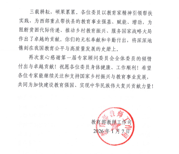 近日,教育部教师工作司发来感谢信,对国家乡村振兴重点帮扶县教育人才“组团式”帮扶工作第一届专家顾问委员会全体委员单位的倾情付出致以诚挚感谢与崇高敬意。济南信息工程学校原党委书记刘光泉作为委员会委员,因在帮扶工作中的突出贡献获教育部专项致谢,其深耕乡村职教帮扶的实践与担当,彰显了学校作为国家级重点中职学校的责任与担当。 自2022年“组团式”帮扶项目启动以来,学校迅速组建专项团队,主动对接甘肃、宁夏6所县域薄弱中职学校,通过“线上+线下”立体化调研,精准对接受援学校需求,在师资培养、专业建设、教学改革等核心领域提供系统性指导,助力受援学校实现教育教学质量、教师队伍能力、学生综合素质和学校管理水平“四个明显提升”。 此次获教育部致信致谢,既是对学校帮扶成效的高度认可,更是对学校持续服务国家战略的有力鞭策。下一步,学校将以此次荣誉为契机,进一步深化帮扶举措,总结推广典型经验,为推动乡村教育高质量发展、加快建设教育强国贡献“济信力量”。