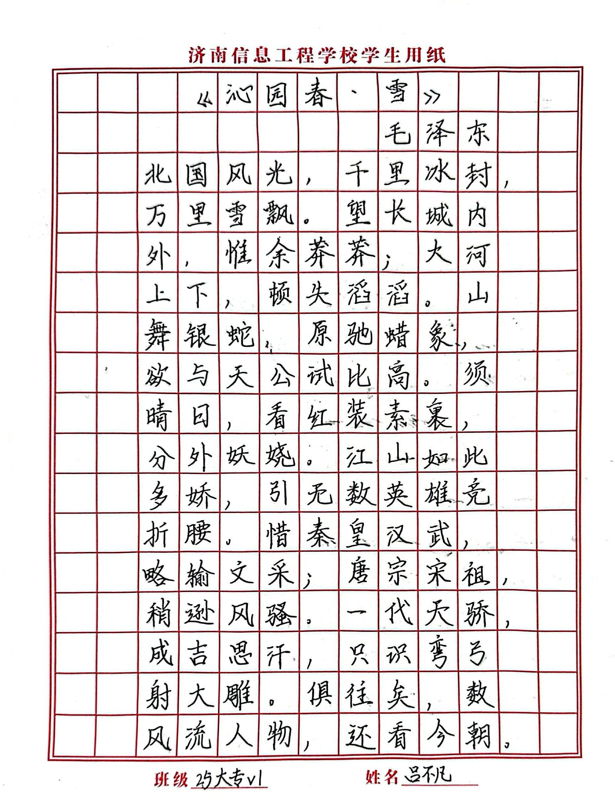 为弘扬中华优秀传统文化,提升学生汉字书写水平与文化素养,营造“以字修身、以墨润心”的校园文化氛围,近日,济南信息工程学校成功举办学生硬笔书法比赛。本次活动历时近一个月,历经班级初评、作品创作、校级评审等多个环节,涌现出一批书写规范、富有美感的优秀作品。 本次比赛自启动以来,各班级积极响应,鼓励学生以笔抒志、以字传情,在笔墨耕耘中体悟文化魅力。在班内初评阶段,同学们认真准备、潜心书写,班内推选出优秀作品进入校级评选。 参赛选手围绕经典诗词、名言警句等内容进行创作,作品或端庄工整、遒劲有力,或清秀雅致、舒展流畅,一笔一划间尽显扎实书写功底,一字一句中饱含对传统文化的敬畏与热爱,充分展现了新时代学子的文化素养与艺术追求。 评审小组从书写规范、字体结构、卷面布局、艺术表现力等维度对作品进行综合评价。经严格评选,共评出一等奖、二等奖、三等奖若干名。 此次活动,在潜移默化中增强了同学们对汉字之美的感知与认同,推动规范书写成为习惯,让文化传承融入日常。今后学校将继续开展形式多样的文化实践活动,将美育融入日常教育,引导学生在数字化时代坚守对书写艺术的尊重与传承,让中华优秀传统文化在校园落地生根、薪火相传。